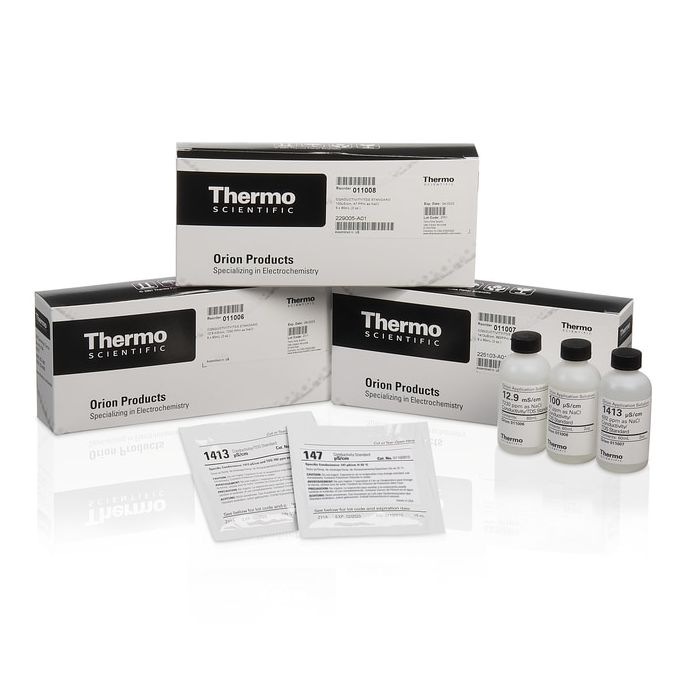 Ensure optimal conductivity probe maintenance and performance with Thermo Scientific™ Orion™ Conductivity Standards and Solutions. Conductivity conditioning solutions, conductivity standards and TDS standards are available for use with your Orion™ 2 Cell Conductivity Probe or Orion™ DuraProbe™ 4 Cell Lab and Field Conductivity Probes. Use these solutions during calibration, cleaning and storage of your probes to help eliminate build-up on the conductivity electrode cell or bulb surface and to attain accurate, consistent readings.